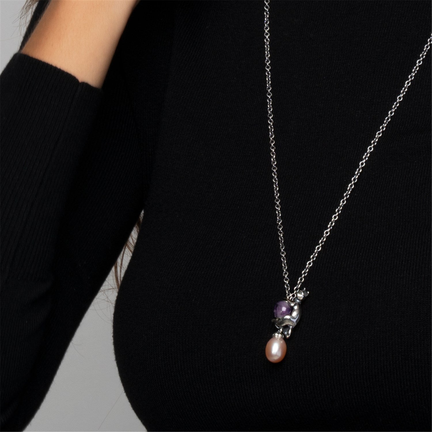貓咪抱座-古典純銀璧珠