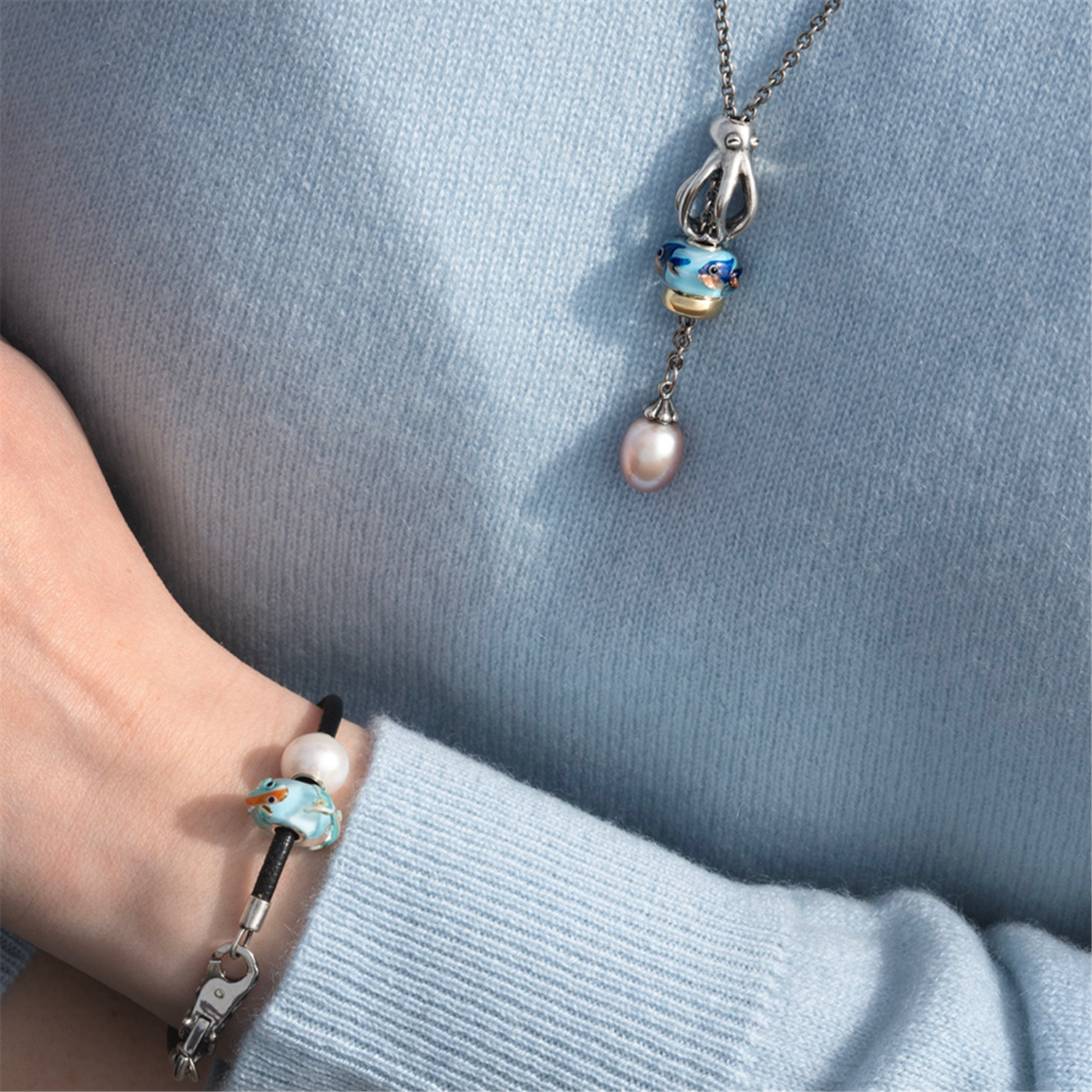 讓章魚海神用他的力量守護你運勢。工藝師手工精雕的925純銀墜飾,其造型能環繞襯托你所喜愛的璧珠,一起串在神話繩項鏈或狐尾項鍊上,因為不同的璧珠尺寸會略有差異,如為組合設計,請在訂單中註明搭配需求。