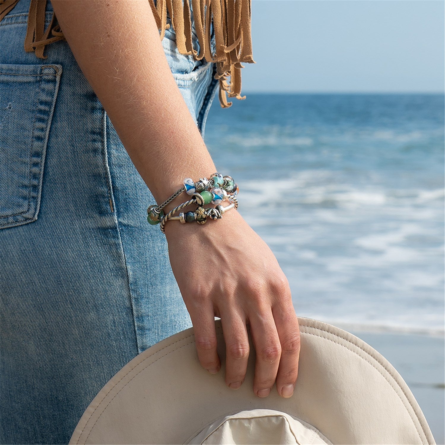 選擇手鍊尺寸,透過添加不同的璧珠來調整設計,直到達到你想要的組合,然後添加一個雙頭鉤來完成手鏈。